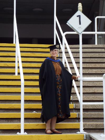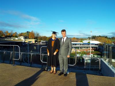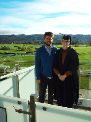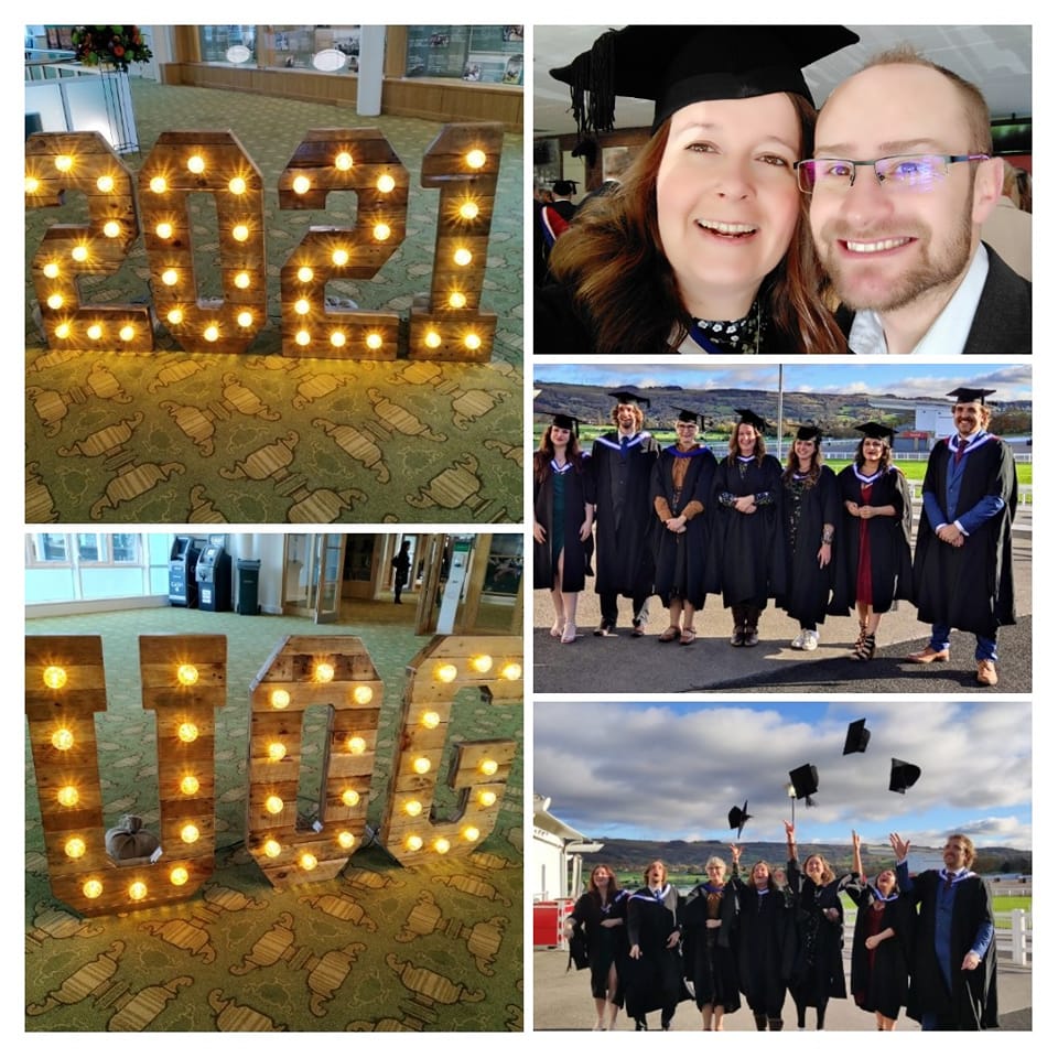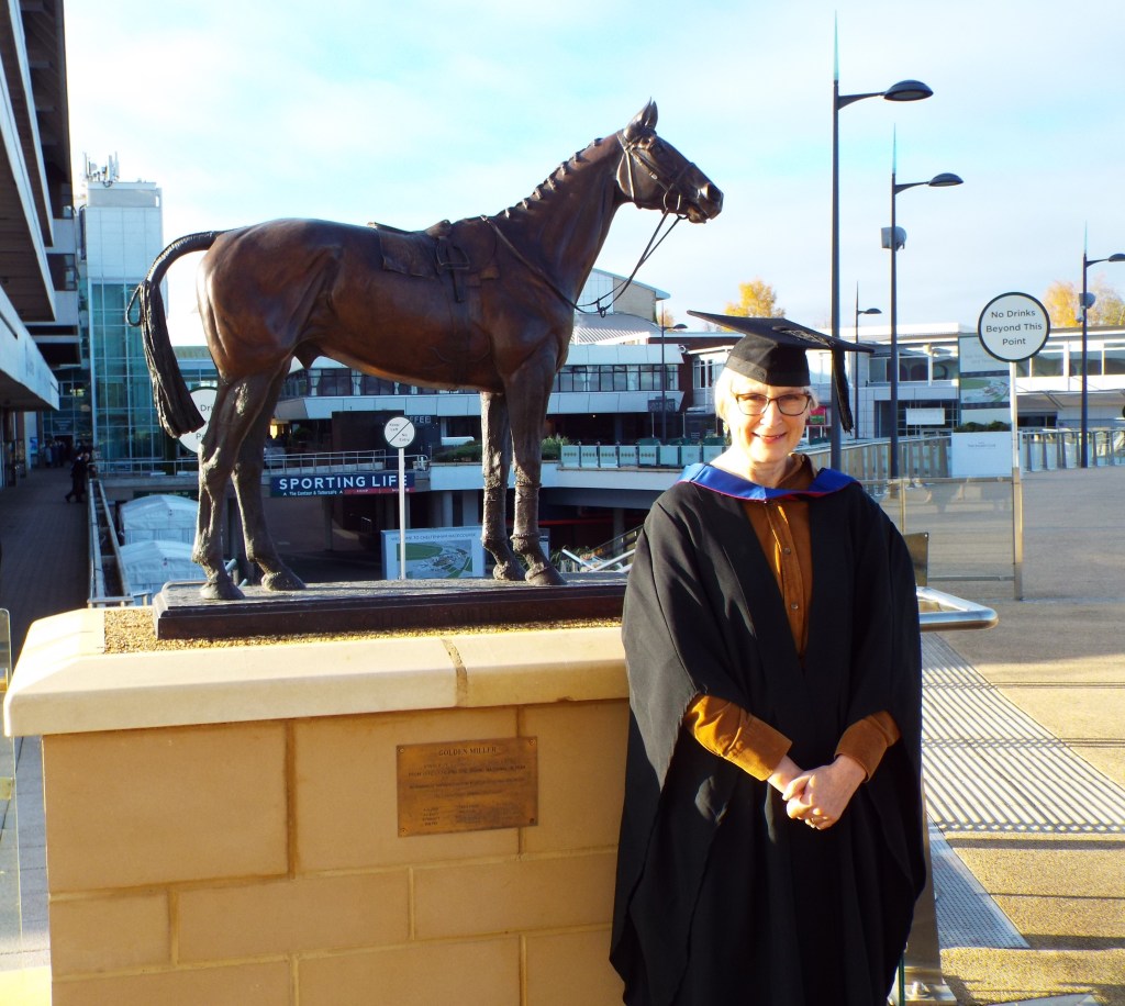 I was at the racecourse to receive my post graduate certificate in Creative and Critical Writing, the first part of a MA course. I had already passed my first degree in English and Theology some years ago, to be followed by a journalism diploma just over 20 years ago but for the first I was out of the country for the ceremony and for the second there wasn’t one. So, having attended both of my boys graduation ceremonies it was now their mother’s turn! Fortunately, my oldest boy, Adam, was able to take a day off work and join myself and my husband, Angus, which was a lovely surprise. It felt odd this time for me to be the centre of attention and to celebrate with some of the other youngsters on my course.