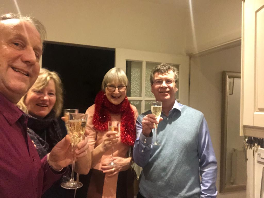 In this picture my husband Angus and myself are celebrating the actual wedding day, yesterday, palindromic day! Two sons married in the one month. The other, my youngest, Luke was married in the US four years ago on 17 February, to the lovely, Kelsey, obviously our marriage month. Two out of two married!! This weekend we hope to be celebrating with them again with a special meal. More photos to come. Watch this space …