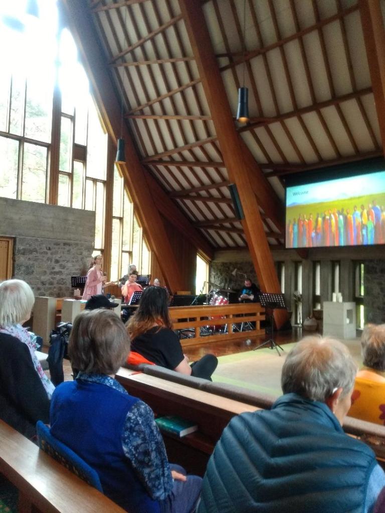 The other soothing and wonderful ingredient in the weekend was the wonderful chapel. The house and assorted buildings were older in build but the chapel seemed new with its glorious steep picture windows and quiet, contemplative feel. The day began on the Saturday with a time in the chapel and ended on Sunday with an inspiring communion service, complete with film clips. I’ve even ordered the film that was featured.