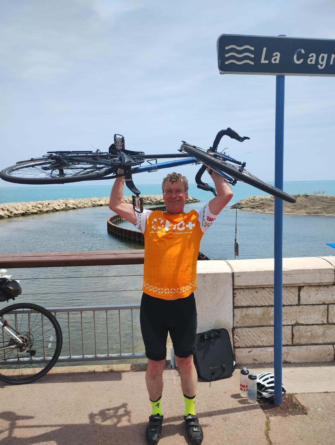The route also took the party on another day to a ski resort after the skiiing season, which gives you some idea of the height. The lovely thing about the route was that it took Angus into small villages and some of the more unexplored regions of France with the tasting of local gastronomic delights. But after 14 fairly grueling days the cyclists finally reached Nice, with its hotter climate and more delightful scenery.